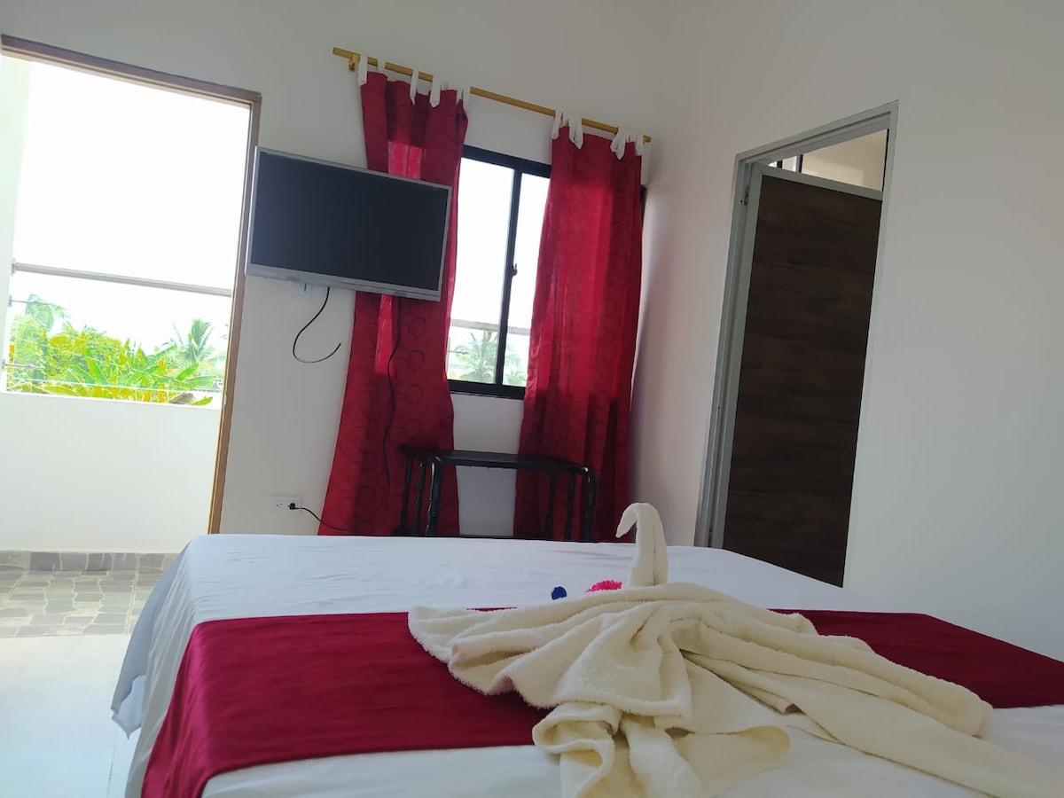 Willkommen in Casa Bohíos! ✨ Das Hotel liegt in Arboletes, 7 Blocks vom Strand und 800 m vom Schlammvulkan entfernt. Ruhige Nachbarschaft mit einfachem Zugang zu Tuk-Tuks oder Motorradtaxis. 💧Aufgrund der Dürre gibt es eine Wasserrationierung: an Wochentagen wird es von 17:00 Uhr bis 5:00 Uhr abgestellt, an Wochenenden und Feiertagen gibt es 24 Stunden Wasser (diese Informationen können je nach Jahreszeit variieren). Wir haben einen Tank und Behälter, um den Wasserbedarf zu decken, falls es keinen gibt. Die Klimaanlage befindet sich im Hauptschlafzimmer