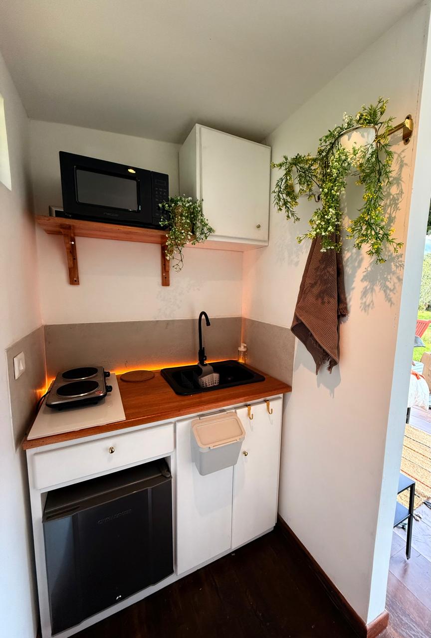 Die Unterkunft ist komplett mit allem ausgestattet, was du für einen außergewöhnlichen Aufenthalt benötigst. Du findest einen Bereich, um Lagerfeuer zu genießen Der Preis inklusive: • Frühstück für zwei Personen an Samstagen, Sonn- und Feiertagen (Frühstück von Montag bis Freitag ist gegen Aufpreis verfügbar) • Unterkunft für zwei Personen • Doppelbett • voll ausgestattete Küche • warmes Wasser • Minibar • Kaffeemaschine • Beheizter Whirlpool • Zugang zum Grillbereich gegen Aufpreis