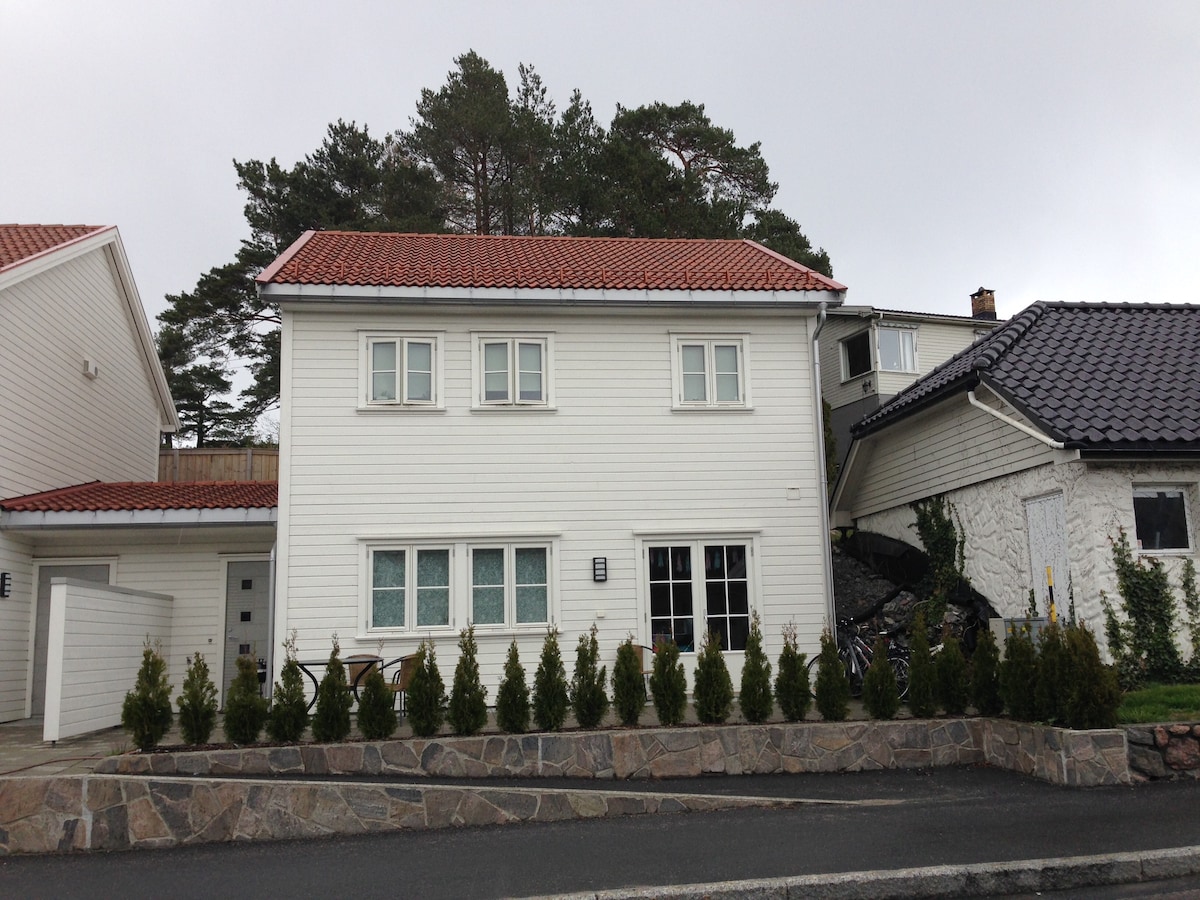 Gemütliche, geräumige und moderne Wohnung in ruhiger Wohngegend. Kostenlose Parkplätze im Carport, sodass du trocken in die Wohnung gehen kannst. Auf einem Hügel mit Blick auf den Süden und Norden gelegen. Kurze Entfernung von E18. 3 km zum Zentrum von Arendal Maximal 5 Gehminuten bis zum nächsten Lebensmittelgeschäft und zur Bushaltestelle. Offenes Wohnzimmer/Küche.