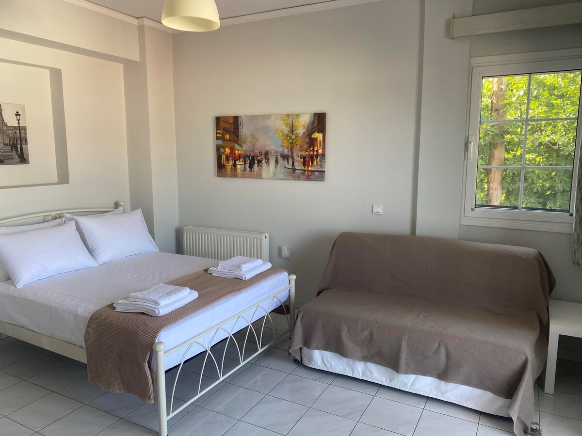 Komfortable Wohnung mit schöner Aussicht wurde entworfen, um dir während deines Urlaubs Komfort und Erholung zu bieten. Kann Familien, Paare oder Freunde beherbergen. Es hat eine schöne Aussicht, ist sonnig und in der Nähe des Stadtzentrums. Komm und erlebe die herzliche griechische Gastfreundschaft und Entspannung, die unsere Unterkunft bietet!!!