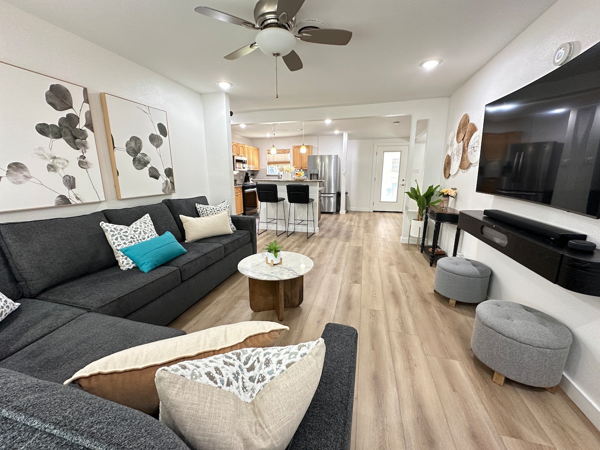 Willkommen in Sun and Oak, einem Heiligtum, das in natürliches Licht getaucht ist und sich im charmanten Viertel Elmwood befindet, nur wenige Minuten vom lebhaften Bishop Arts District entfernt. Diese exquisite Residenz mit zwei Schlafzimmern bietet einen ruhigen Rückzugsort, an dem Gäste sich inmitten eines wunderschön gestalteten Raums entspannen und neue Energie tanken können. HINWEIS: Wir bieten keinen frühen Check-in an, da unser Reinigungsteam Zeit benötigt, um die Unterkunft vorzubereiten.