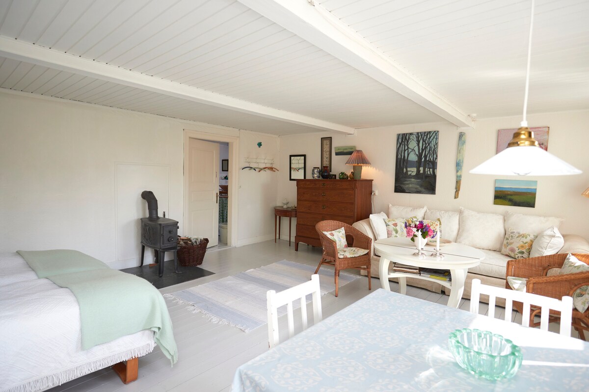 Karlekammeret ist das alte Karlekammer, in dem die Männer in alten Zeiten im Pfarrhaus lebten. Die Wohnung ist im alten Retro-Stil eingerichtet, sodass Sie das Gefühl haben, in die Vergangenheit zurückzukehren. Das Pfarrhaus befindet sich neben Dänemarks größtem Loch - einem Steinbruch, der seit mehr als 100 Jahren aktiv ist und heute eine Touristenattraktion ist. Es ist ein wunderschönes Naturgebiet mit einem reichen Vogelleben. Genießen Sie die Ruhe - mit Meerblick aus allen Fenstern, sowie Blick auf den See mit Freilandhühnern, Obstgarten und Blumenwiese.
