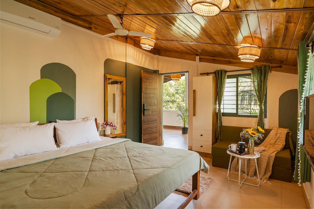 Willkommen im Serene View Loft, einer ruhigen Oase in Arambol, Goa. Genieße eine gemütliche Küche, eine weiche 8-Zoll-Matratze und einen Arbeitsplatz mit Panoramablick. Betrete den Balkon durch elegante Glastüren für atemberaubende Feldaussichten. Bleibe mit schnellem 150Mbp/s Internet in Verbindung und kühle dich mit einer LG-Klimaanlage ab. Erlebe das lokale Leben in einer ruhigen Gegend, nur 2 km von der Arambol Main Street und dem Strand entfernt. Entfliehe dem Trubel und sei dennoch in der Nähe aller Annehmlichkeiten. Buche jetzt für einen ruhigen Kurzurlaub.