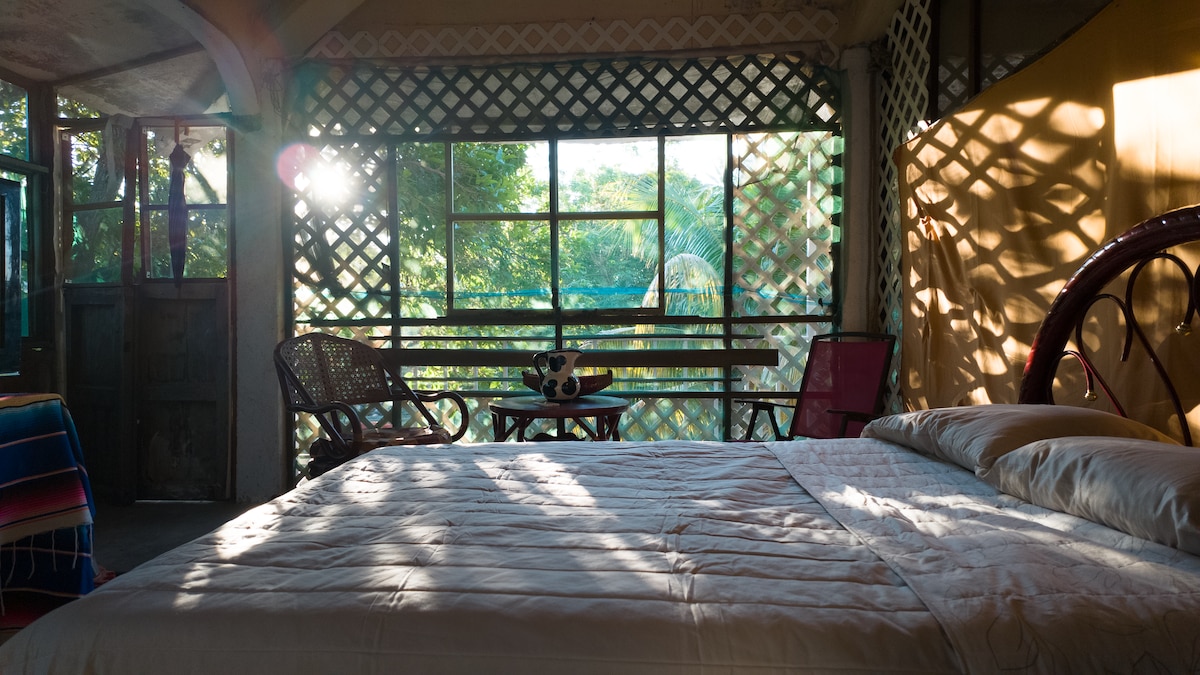 Casa de Campo en puerto arista con toque hogareño de Familia chiapaneca, con espacios a la naturaleza y a unas cuadras de la playa. Cuenta con espació para hamacas. asador y baño exterior con regadera al aire libre, áreas verdes en un lugar muy agradable
