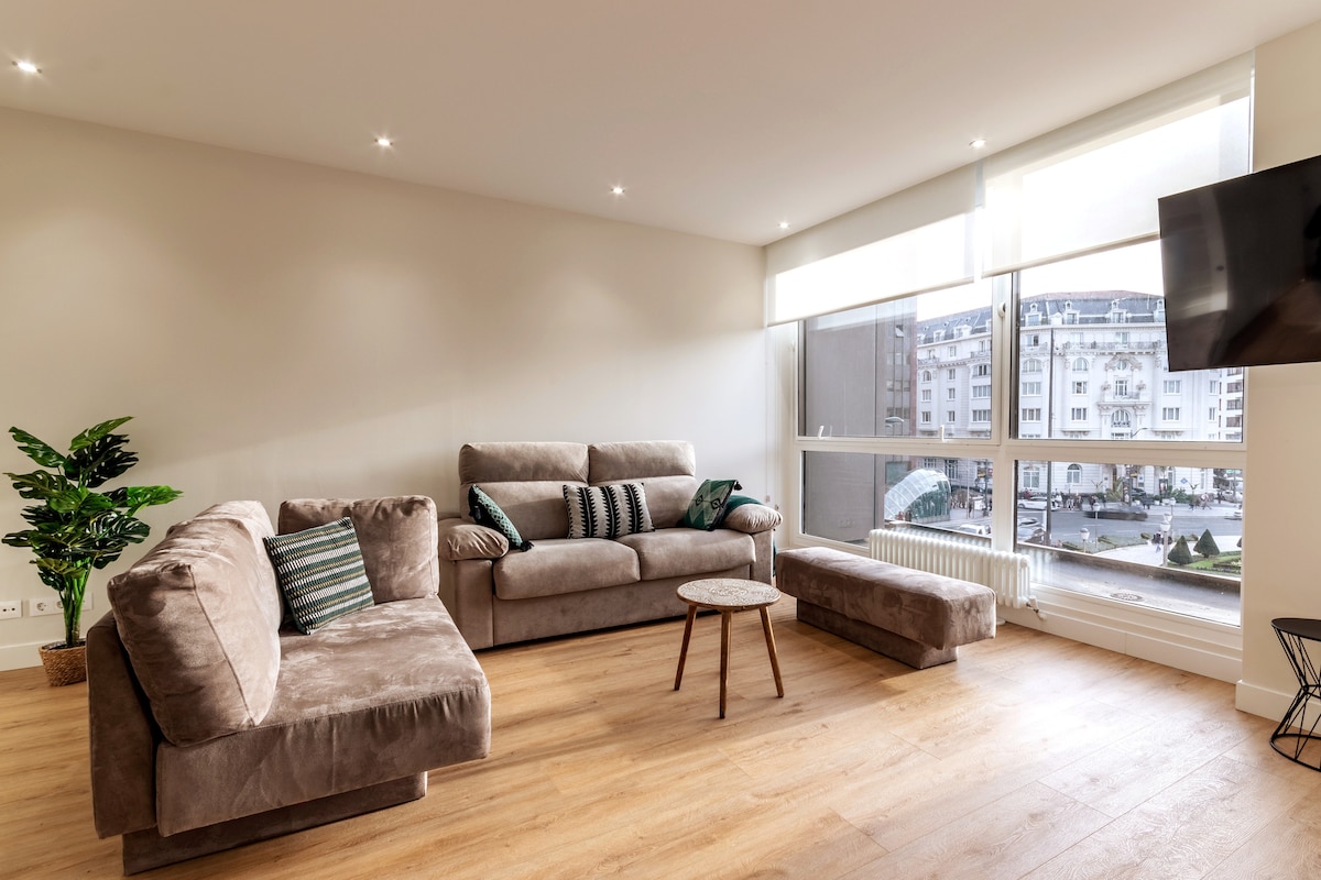 Precioso, luminoso y recién reformado apartamento en pleno casco antiguo de Bilbao, con unas vistas magnificas del teatro Arriaga y el paseo del Arenal.Tratamiento con OZONO para la desinfección del ambiente. El apartamento se encuentra situado en una casa palacio del año 1826. El alojamiento tiene una hab ppal. con cama de doble y salón-comedor con cómodo sofá-cama. Cocina totalmente equipada y menaje. El baño cuenta con ducha, toallas, secador y champú-gel ecológico🌸