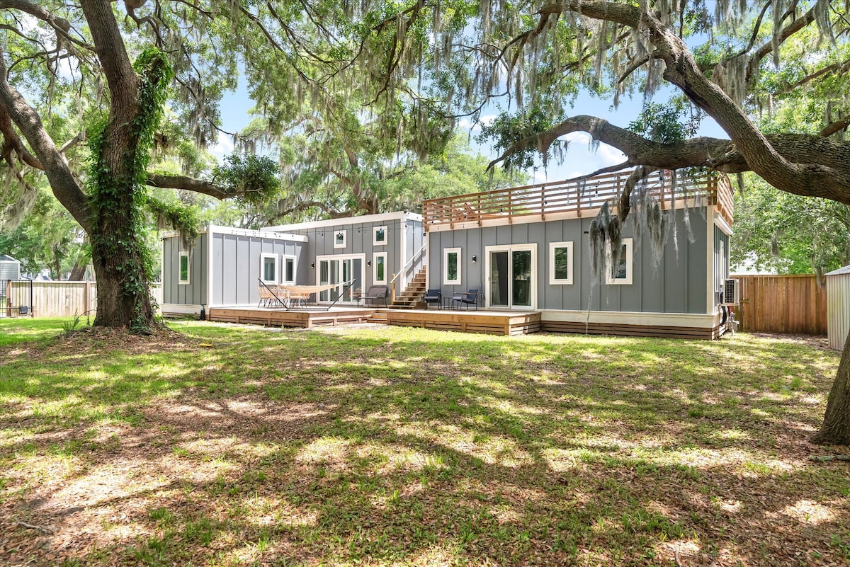 Entspanne dich bei diesem einzigartigen und ruhigen Kurzurlaub. Genieß die Eichen von der Hängematte oder der Dachterrasse mit deinem Morgenkaffee oder Cocktail am Nachmittag. Das Haus steht bereit, damit du dich wie zu Hause fühlen und das Lowcountry genießen kannst! 10–15 Minuten bis zur Innenstadt 5-10 Min. zum Flughafen 30 Minuten zum Strand (Torheit) 20-30 Minuten zum Shem Creek 5 Minuten zu den Steckdosen. Packe & spiele auf Anfrage. Genehmigung für Kurzzeitvermietungen in der Stadt North Charleston 2026-0329