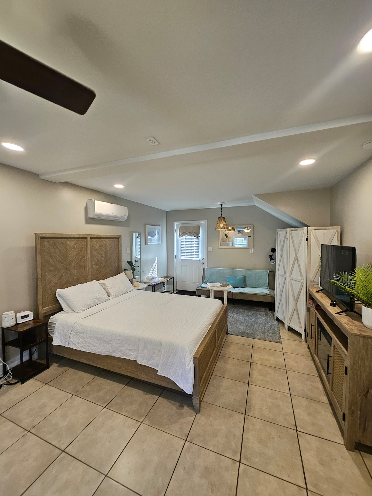 Entspanne dich in dieser wunderschönen privaten Pension, die sich in perfekter Lage nur wenige Minuten von Einkaufsmöglichkeiten, Restaurants, Unterhaltungsmöglichkeiten und dem Strand entfernt befindet. Bei der Ankunft wartet gekühltes Wasser in Flaschen auf dich. Wenn der Abend hereinbricht, mach einen ruhigen Spaziergang entlang des nahe gelegenen Naturlehrpfades und erlebe einen atemberaubenden Sonnenuntergang vom Dock der Nachbarschaft. Wenn du zurückkehrst, kannst du dich mit deinen Lieblingsfilmen auf dem 70-Zoll-Smart-TV für die Nacht einrichten – keine geteilte Armlehne erforderlich. Komm, bleib, entspanne dich und mache diesen Kurzurlaub zu deinem eigenen.