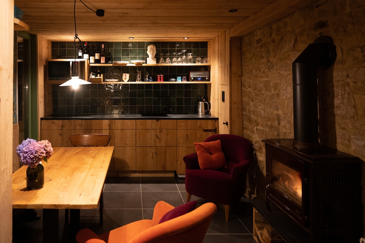 Looking for a truly unique spot to surprise your partner? To celebrate a special occasion? Or simply to retreat to a quiet location after a stressful day? Then come over to El Clandestino - Luna, located in the middle of a Natural Reserve 5 minutes away from the Center of the wonderful city of Dinant. You will sit atop a hill with an astounding view over the city while simultaneously being in the middle of the woods! The cottage is fully equipped with its own private wellness, netflix, open fire