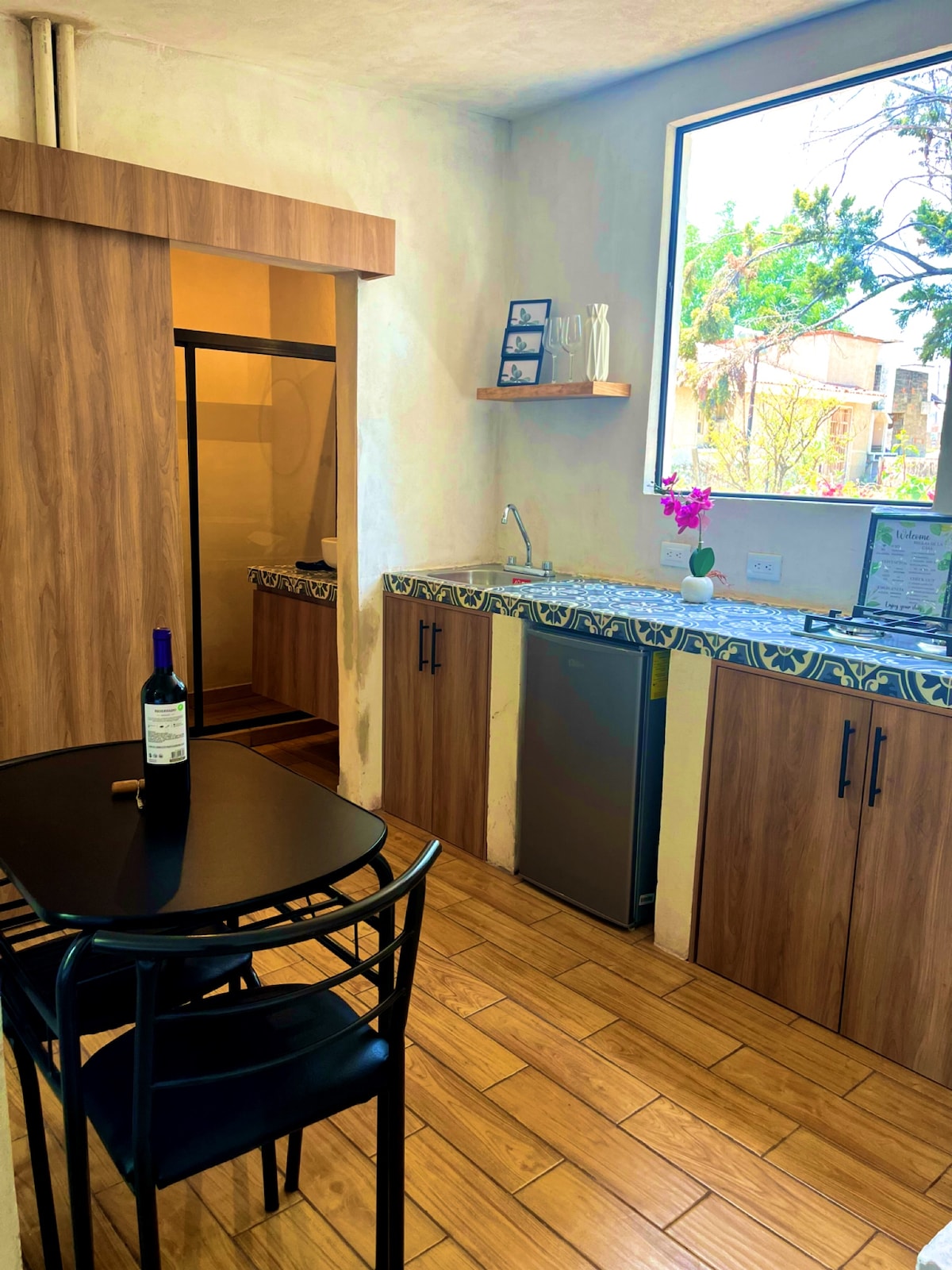 Genieße die Einfachheit dieses ruhigen, zentralen und unabhängigen Hauses. Das Hotel liegt in einer einfachen und sicheren Gegend, auf der ersten Ebene, nicht geeignet für Menschen im Rollstuhl, da du 4 Stufen klettern musst, um die erste Ebene zu erreichen. Mit 1 Schlafzimmer, Aufenthalt mit einem Schlafsofa (optional, um eine dritte Person mit Kosten unterzubringen), kleinem Esszimmer, ausgestatteter Küche in Schokoladenton. Optionales Parken einen Block entfernt für kompakte Autos exklusiv für das Haus zu einem Preis pro Nacht.