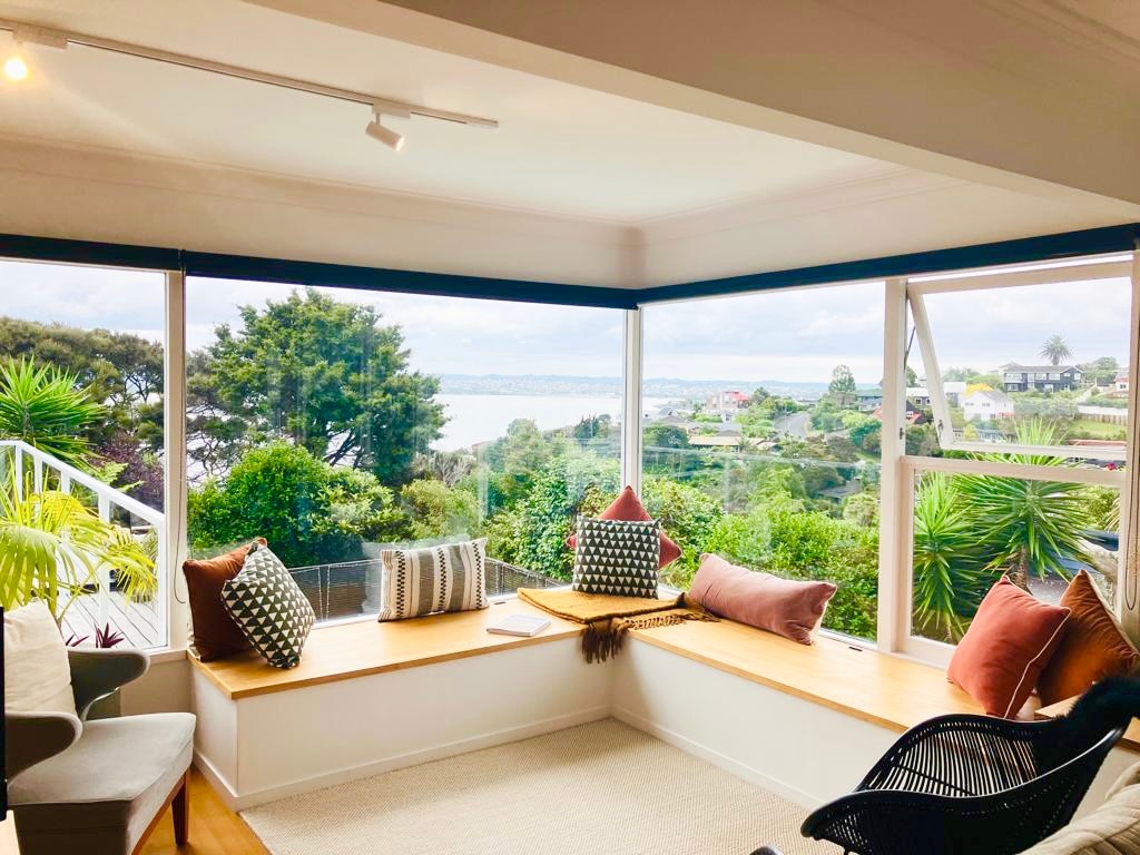 1km from the beach/restaurants/ pharmacy/supermarket in Mairangi Bay (10 mins walk/2-3 mins drive).The guest area is below the main house & has its own entrance. The studio with HRV ventilation, heatpump and double glazing is ideal for solo travellers, couples with or without one small child. Please note that our downstairs studio has a low ceiling (1.98m high). Breakfast: Tea/Coffee (Nespresso Machine)/Cereal and milk included. Bed configuration: 1 double bed 1 king single bed