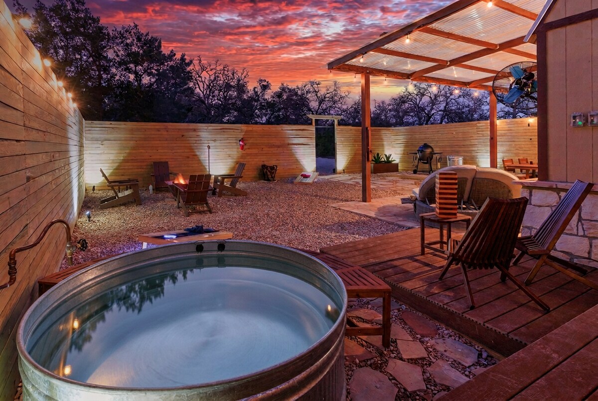 Willkommen im Bee Creek Cottage – einem stilvollen, modernen Rückzugsort im Texas Hill Country. Perfekt für Paare, kleine Gruppen oder Brautaufenthalte: Diese private Oase bietet Naturblicke, elegante Innenräume und einfachen Zugang zu Weingütern und Austin. 🌊 Private Terrasse mit Whirlpool 🔥 Feuerstelle mit Adirondack-Stühlen & Blick auf die Hügel 🕹️ Gemeinschaftliches Annehmlichkeitszentrum: Pool, Whirlpool, Trampolin, Streichelzoo und Spielzimmer 🎨 Zugang zur Kunstgalerie vor Ort und zu Wanderwegen 🍷 Nur wenige Minuten von texanischen Weingütern, Grill & Lake Travis