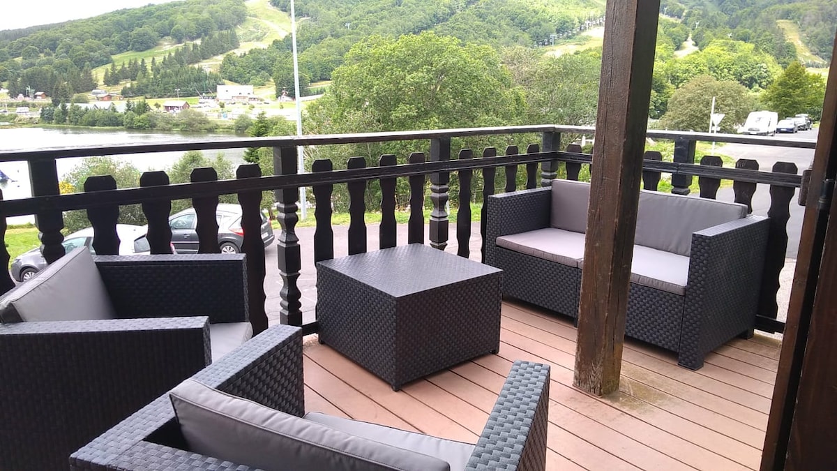 Großes Cevennes-Chalet mit Blick auf den See von Villefort