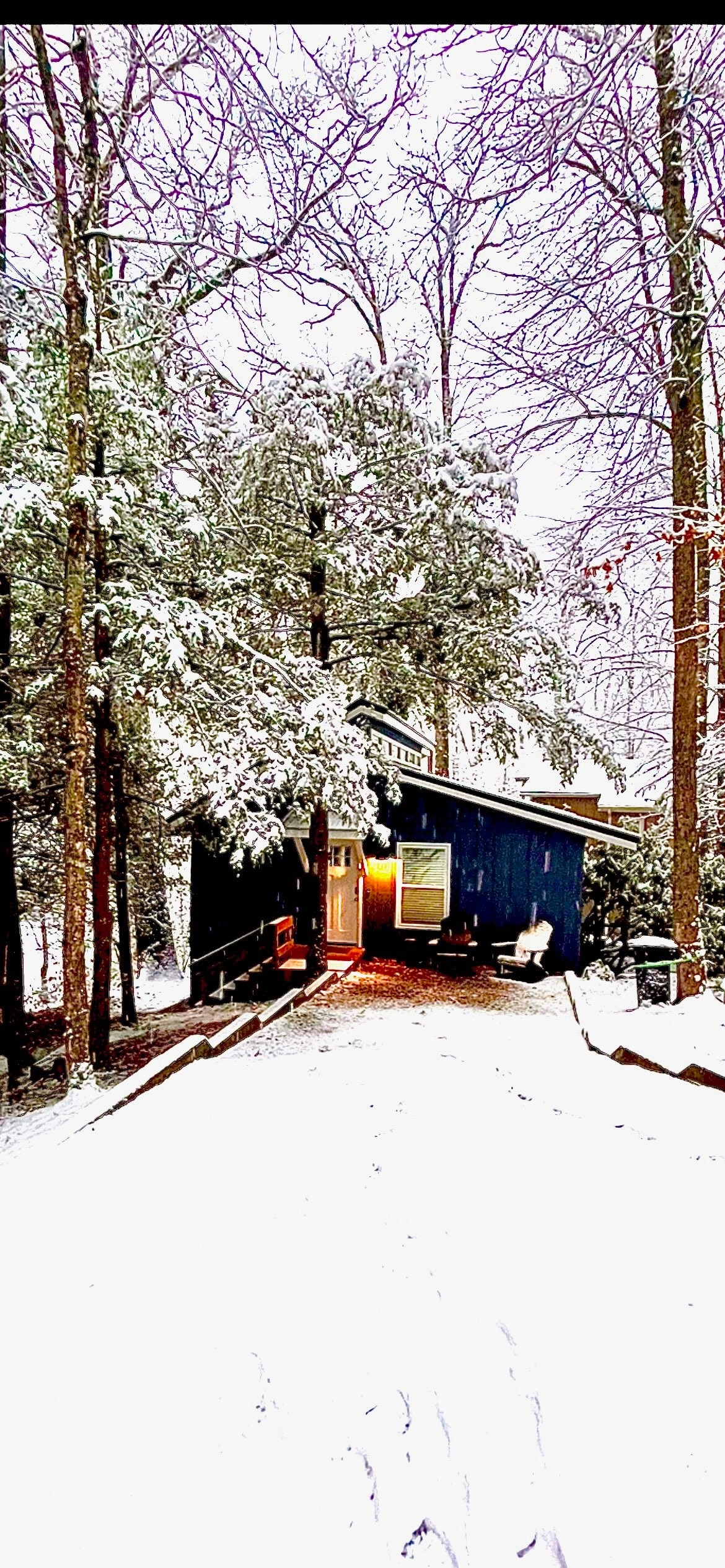 Located 9 miles from Blowing Rock Village, 6 miles from Grandfather Mtn and 4 miles from the Blue Ridge Parkway, Wildberry Cottage is situated on three acres bordering the Nat’l Forest. There is a gorgeous view from the deck where visitors are welcome to relax. The guest space is a suite (entire floor) with two br (1 full, 1 twin), a kitchenette (in single room) and a full bath. Parking at top of paved drive may be necessary for rear-wheel drive cars during inclement weather.