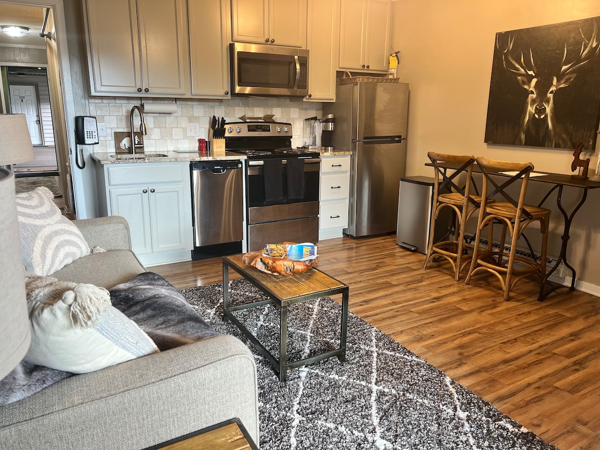 Besuche den Westen von North Carolina. Auf 5000 Fuß hat unser Eigentumswohnungskomplex eine gute Anbindung an Oma's Meadow im Sugar Mountain Ski Resort und Restaurants in der Nähe. Wir sind auch in der Nähe des Grandfather Mountain State Park. Unsere Effizienzeinheit verfügt über ein Queensize-Bett, ein Schlafsofa, eine Duo-Keurig-Kaffeemaschine und einen Smart-TV zum Streamen. Mache Sugar Mountain zu deinem schnellen Reiseziel. Verwende während deines Aufenthalts einen Parkausweis (wird bereitgestellt). Schneeketten oder Allradantrieb sind bei schweren Schneeverhältnissen erforderlich.