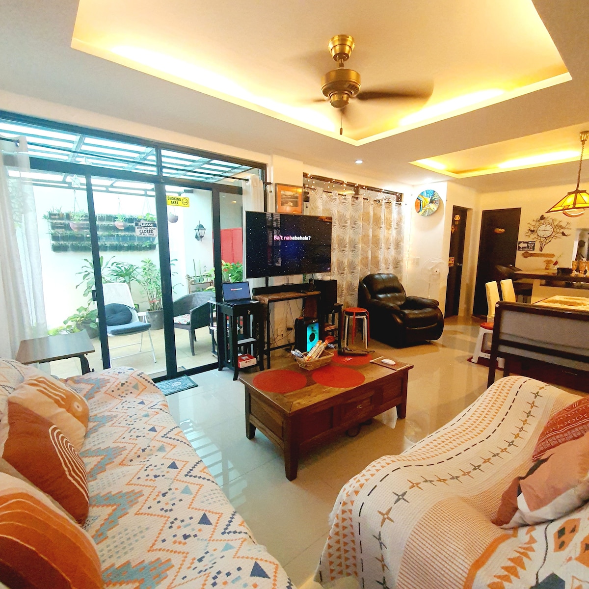 Geräumiges und gemütliches 3BR-Haus (10 Schlafplätze, max. 12) mit Klimaanlage, Verdunkelungsvorhängen, bequemen Betten und Smart-TVs mit Netflix/Prime. Offener Wohnbereich mit 75-Zoll-Fernseher, Karaoke und Küche für gemeinsame Mahlzeiten. Das Poolhaus verfügt über eine Bar, einen Grill, einen Essbereich und einen Pool sowie eine ruhige Gartenlounge. Handtücher, Pflegeprodukte, Trinkwasser und 3 Parkplätze sind vorhanden. ₱800 Reinigungsgebühr (nicht im Preis pro Nacht enthalten). Bitte schalte das Licht und die Klimaanlage aus, wenn du sie nicht brauchst. Vielen Dank! Wir freuen uns darauf, dich bei uns zu begrüßen! 🫶