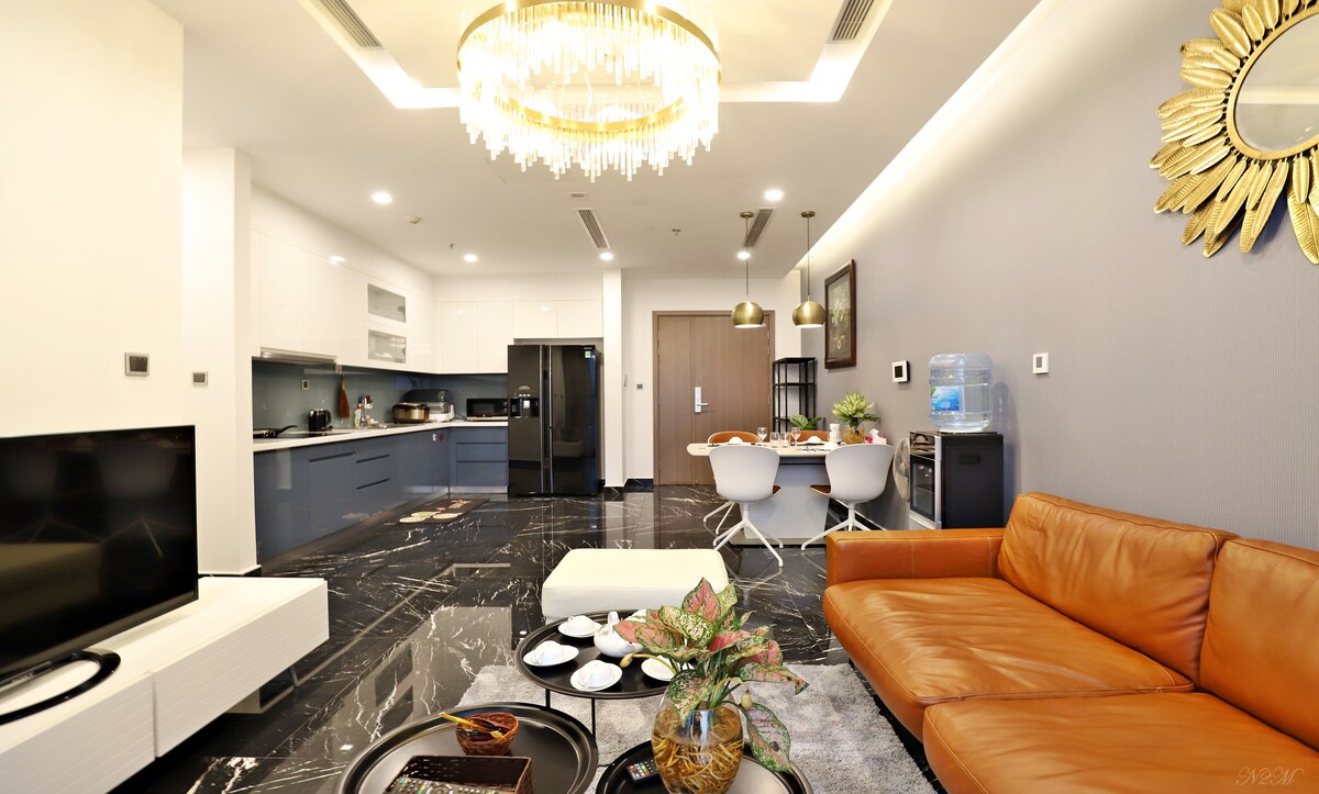 Liebe Gäste! Das Gebäude verlangt jetzt einen Gesichtsausweis, um einzutreten, daher dauerte der Prozess einige Zeit. Die Verifizierung der Gesichts-ID dauert ein paar Tage oder eine Woche, daher akzeptieren wir nur Gäste, die für mindestens EINEN MONAT in dieser Wohnung buchen. Vielen Dank für dein Verständnis! Unsere Wohnung mit Blick auf die Hauptstraße befindet sich im fünfzehnten Stock des Vinhomes Metropolis M2-Gebäudes. Monatliche Gäste erhalten kostenlosen Zugang zum Fitnessraum, zum Pool, zur wöchentlichen Zimmerreinigung usw.