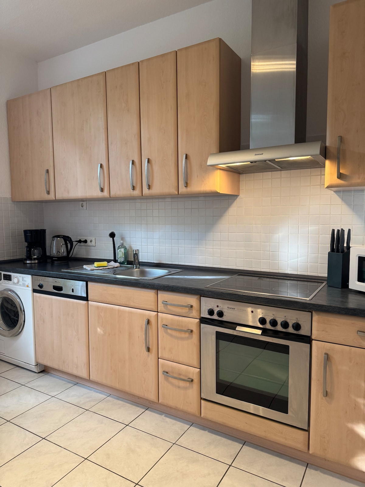 Gemütlich, lichtdurchflutete und stylisch neu eingerichtete Wohnung: Modernes Schlafzimmer +1 Schlafzimmer mit hochwertigem Boxspringbett & Smart TV Wohnzimmer + Gemütliche Sitzmöglichkeiten und TV Voll ausgestattete Küche + Mit gemütlicher Essecke mit 4 Stühlen + Öl, Kaffee, Tee, Salz, Pfeffer, Modernes Bad + Mit Dusche, Toilette und Waschtisch und 2 Fenster Unterwegs + Parkplatz und Fahrräder stehen kostenlos zur Verfügung + Zentrum schnell erreichbar mit dem Fahrrad, Auto und Bus.