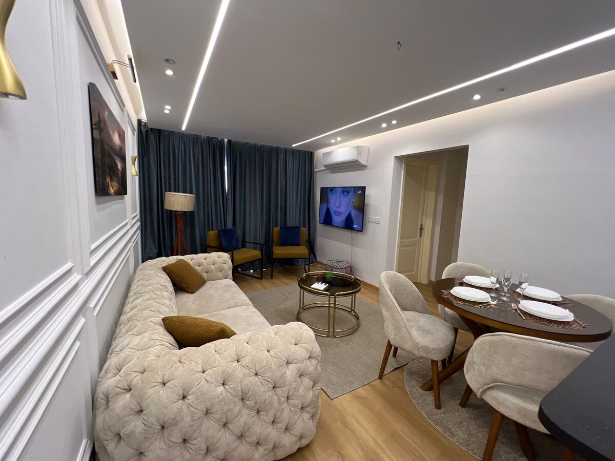 🌟 What This Place Offers • 🛏 Sleeps up to 4 guests (comfy bed + sofa bed) • ❄️ Fully air-conditioned with brand-new appliances • 💻 Optical fiber high-speed internet – perfect for work & streaming • 🍳 Fully equipped kitchen with stylish bar table • 📺 50” Smart TV in a cozy living area • 🚗 Only 4 min from Suez Road – easy access to the city • 🏡 Peaceful & friendly neighborhood