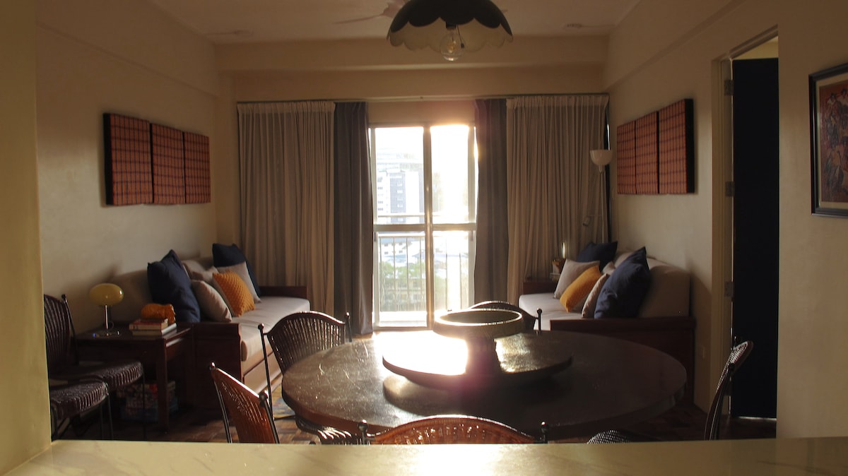 Große Wohnung im Stadtzentrum. Vor der Sportschale im Burnham Park. 2 große Betten, +1 großes Schlafzimmer (Personalquartiergröße) & 3 Badezimmer. Ausgestattete Küche mit Herd, Kühlschrank, Reiskocher, Toaster und kompletten Pfannen & Utensilien. Warmwasserduschen. Kabelfernsehen,WLAN, 24-Stunden-Sicherheitsdienst mit kostenlosen Parkplätzen. Preis: Basispreis für 5 Personen, wie auf der Registerkarte angegeben. Zusätzliche Gebühr:P800/Kopf/Nacht über 5 Gäste auf maximal 10. Kinder unter 2 Jahren sind kostenlos. Airbnb berechnet den Endpreis. Nicht rollstuhlgerecht