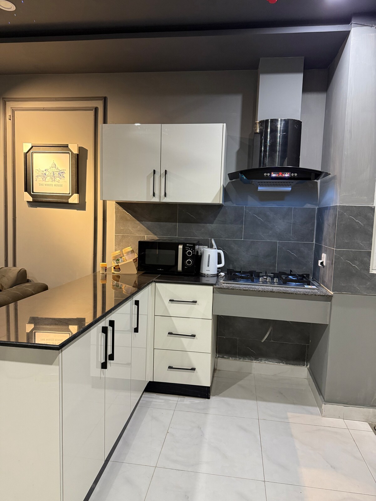 Erleben Sie Komfort und Stil in dieser charmanten 1-Zimmer-Wohnung im Herzen von Bahria Town in Lahore. Genieße direkt von deinem Fenster aus einen entspannenden Blick auf den belebten Boulevard – perfekt für morgens Kaffee oder abends zum Entspannen. Die Wohnung ist liebevoll mit modernen Annehmlichkeiten eingerichtet, um deinen Aufenthalt reibungslos und angenehm zu gestalten. Diese gemütliche Unterkunft ist ideal für Paare, Geschäftsreisende oder Kurzaufenthalte und bietet eine sichere, ruhige Umgebung mit einfachem Zugang zu Restaurants, Einkaufsmöglichkeiten und alltäglichen Annehmlichkeiten.