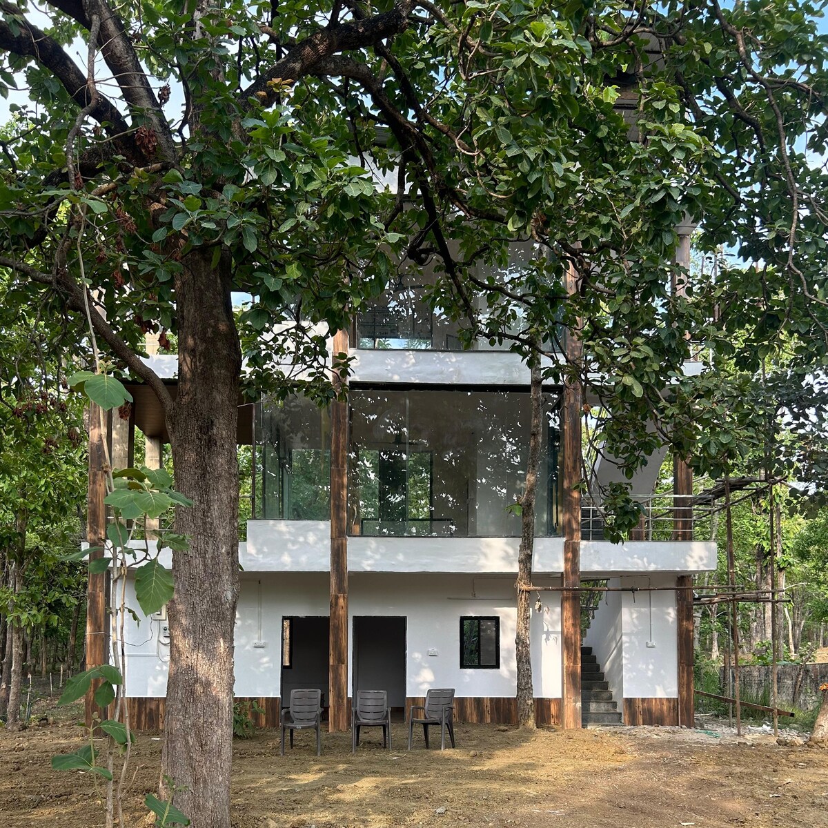 PUNU'S JUNGLE HOUSE Covered with three side water stream is situated in buffer zone of Nagzira National Park, 6.5 km from Mangezari Safari gate. Feel of Jungle with luxury have ultimate comfort . Jungle view from your private balcony & enjoy top-tier resort amenities with organic & desi food preparation in chulha. Having a game zone, Zip Line with adventures sport, cycling, Jungle tracking, fishing, farming and all other activities in nature. A beautiful, natural, peaceful place for relaxation.