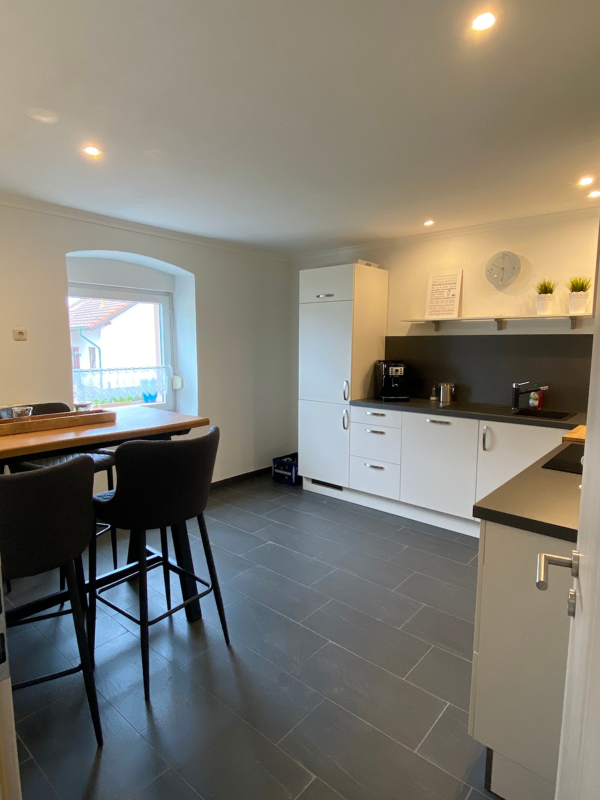 Herzlich willkommen in unserer großzügigen und ruhig gelegenen Ferienwohnung im Grünen in 54636 Seffern. Auf fast 70qm im EG stehen eine komplett ausgestattete Küche inkl. Geschirrspüler, Wasserkocher, Kaffeemaschine, Toaster, Sandwichmaker, ein Badezimmer mit großer Badewanne, ein Schlafzimmer mit 1,80x2,00m großem Bett sowie ein weiteres Schlaf-/Wohnzimmer mit zwei Sofas und einem 1,40m breiten Bett bereit.