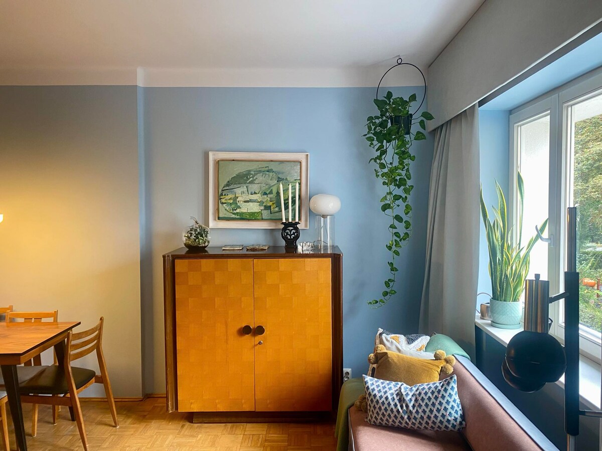 Braue etwas Bialetti-Kaffee und mach es dir gemütlich, um einen Film auf einem Fernseher mit integriertem Chromecast anzusehen oder im Sommer auf dem mit Weinblättern bedeckten Balkon zu frühstücken. Diese sehr ruhige geheime Wohnung befindet sich im Erdgeschoss eines modernistischen Wohnhauses aus der Vorkriegszeit im Zentrum, nur wenige Gehminuten von der historischen Altstadt entfernt. Die Nähe zu verschiedenen Lebensmittelgeschäften, Bars, Restaurants und öffentlichen Verkehrsmitteln macht diesen Ort zu einer idealen Wahl für Krakauer Entdecker.