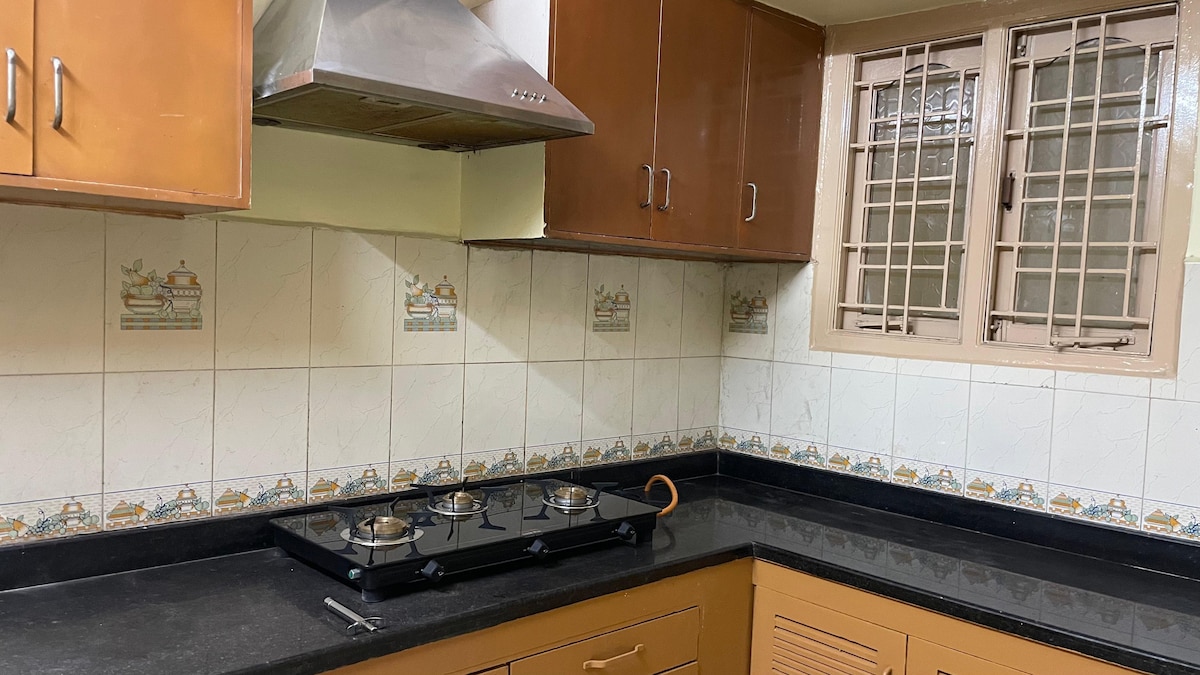 Hab Spaß mit der ganzen Familie in dieser stilvollen Unterkunft. In einer 4-Zimmer-Wohnung, geschmackvoll eingerichtet, 24 Stunden Strom-Backup, heißes Wasser die ganze Zeit, Blu-ray-Disc-Player, komplette Küche zur Verfügung, 2 Balkone, 3 Badezimmer mit Dusche und Badewanne, 2 LED-Fernseher mit Tata Play, Parkplatz für dein Auto im Untergeschoss. Sie ist mit sauberer Bettwäsche und Betten für dich bereit.