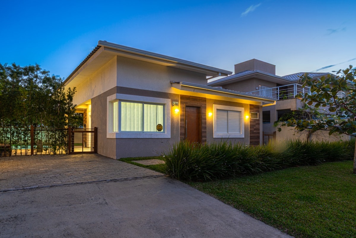 Genieße Ruhetage in einem gemütlichen Haus, in einer geschlossenen Wohnanlage mit kontrolliertem Zugang, einer ruhigen und sicheren Umgebung, perfekt zum Entspannen. Ein paar Meter vom Strand entfernt, mit einem Spielplatz für Kinder und einer ruhigen Nachbarschaft. Das Haus verfügt über 2 Schlafzimmer, 2 Badezimmer, ein integriertes Wohnzimmer und eine Küche, einen Außenbereich mit einem Grill und einen privaten Pool. WLAN / TV Kühlschrank, Mikrowelle, Kaffeemaschine und Grill. Komplette Küchenutensilien. Ideal, um es zu jeder Jahreszeit mit der Familie zu genießen.