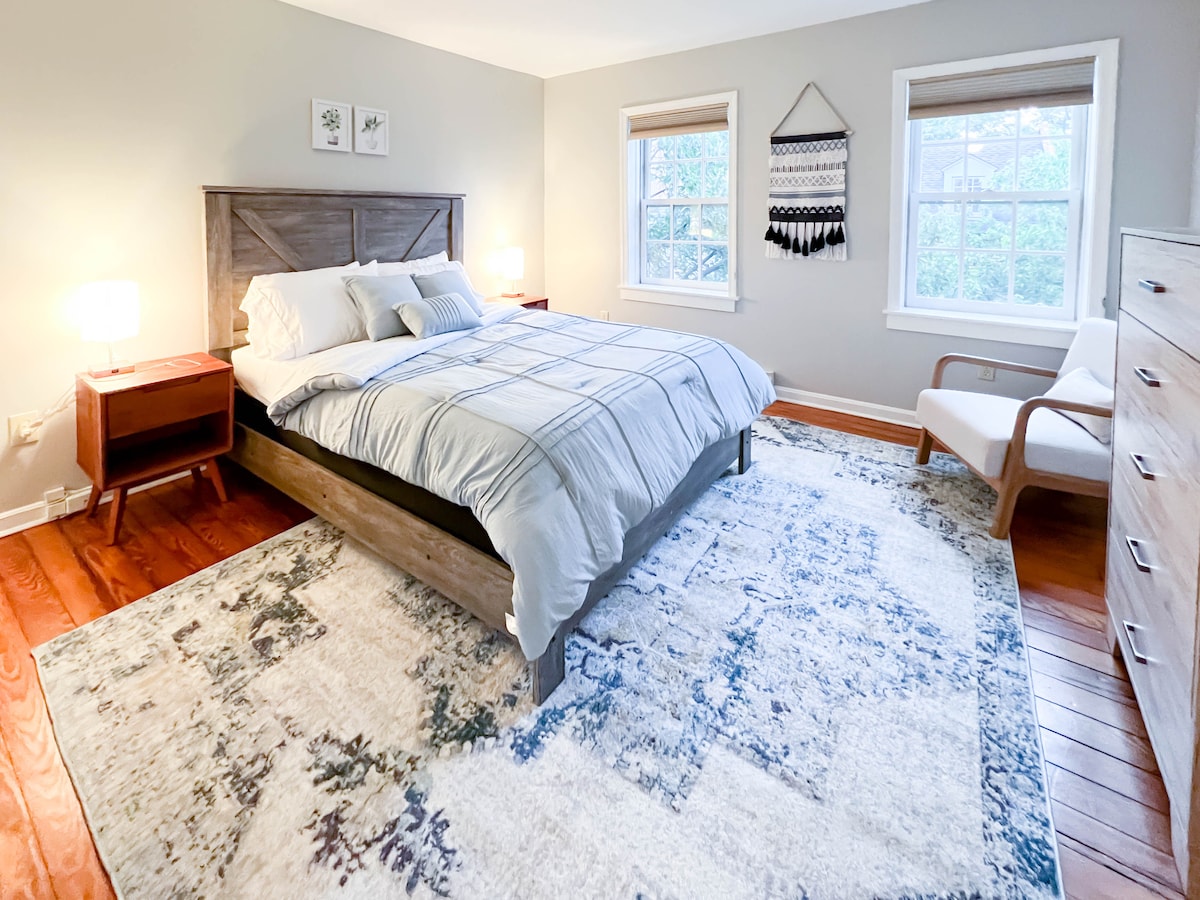 Betrete eine großzügig geräumige, offene Wohnung. Die komfortable Einrichtung in diesem Haus verbindet authentische Stile mit modernem Design. Beginne deinen Morgen mit einem makellos sauberen Badezimmer. Genieße einen Filmabend im großen Wohnzimmer oder lege dich auf das komfortable Kingsize-Bett. Lies die ganze Nacht bei einem warmen Kaminfeuer. Bleibe im Hinterhof und genieße die Ruhe von Sykesville! Genieße das High-Speed-Internet und den großen Raum für deine Bedürfnisse bei der Arbeit von zu Hause aus. Bleibe eine Weile und mache die Unterkunft zu deinem Zuhause.