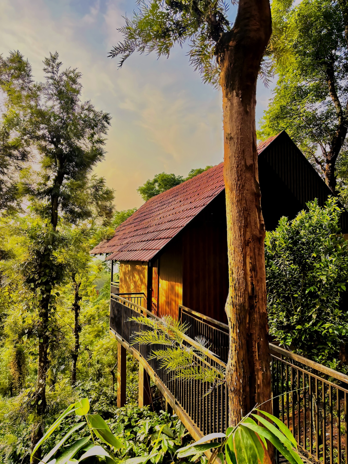 Willkommen in der FARMCabin – einer charmanten Öko-Hütte inmitten einer üppigen Kaffeeplantage! Wache mit Blick auf den Teegarten auf der einen Seite und einem Bach von einem saisonalen Wasserfall auf der anderen Seite auf. Nachhaltig gebaut, umgeben von Gewürzen, Bäumen und Blumen, ist es dein perfekter Rückzugsort in die Natur. Nur 5 km von Meppadi entfernt, verbindet dieses gemütliche Refugium Komfort, Ruhe und eine Prise wilde Schönheit – ideal für Paare oder Alleinreisende.