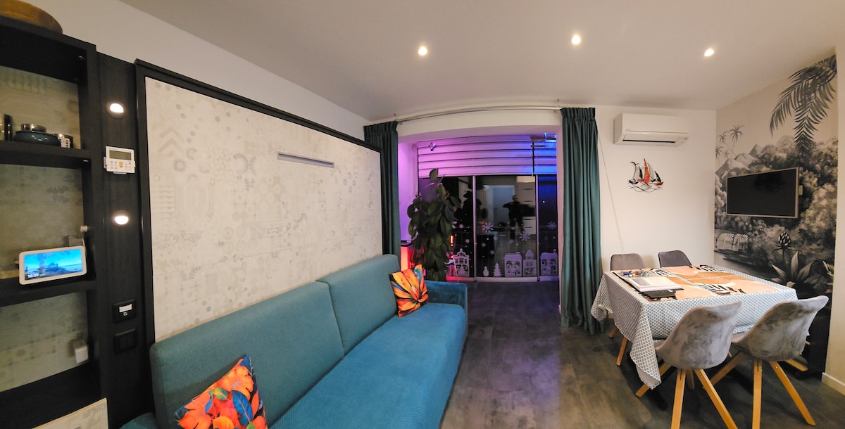 Entdecken Sie unsere Unterkunft in einer kleinen Residenz, die 20 Meter vom Strand entfernt liegt. Komplett renovierte 42 m2 große 2-Zimmer-Wohnung im 2. Stock mit Balkon und Meerblick. Bestehend aus einer zum Wohnzimmer hin offenen Küche mit Schlafsofa für tägliches Schlafen in 160 x 200. Ein großes Schlafzimmer mit Bett 160 x 200, Büro für Telearbeit, Ankleidezimmer. Badezimmer mit großer Dusche, separates WC. TV, Glasfaser-Internet, Klimaanlage, 1 Parkplatz in der Residenz. In der Nähe aller Geschäfte