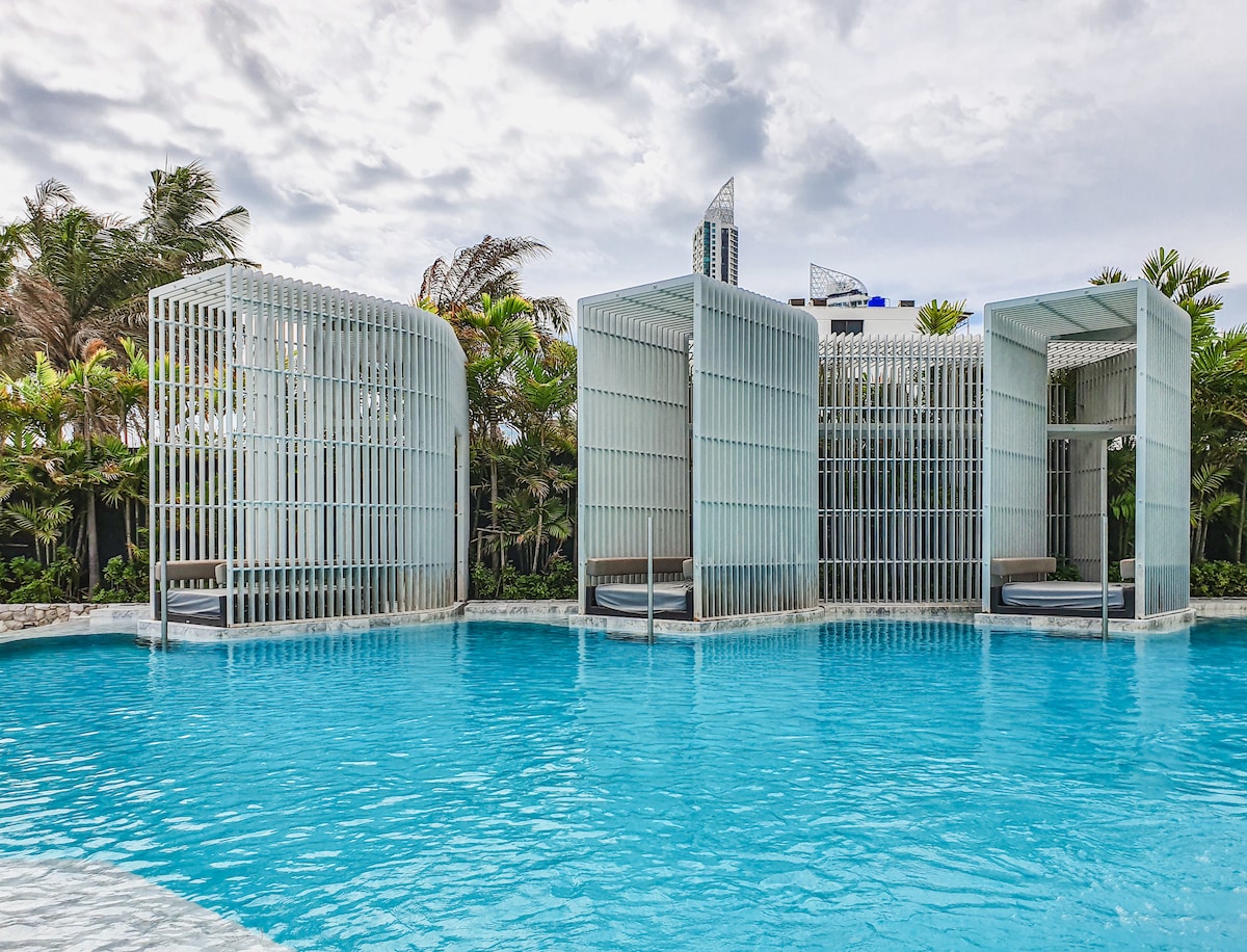 Blick auf den Pool auf der Dachterrasse | Spaziergang zum Strand und Nachtleben