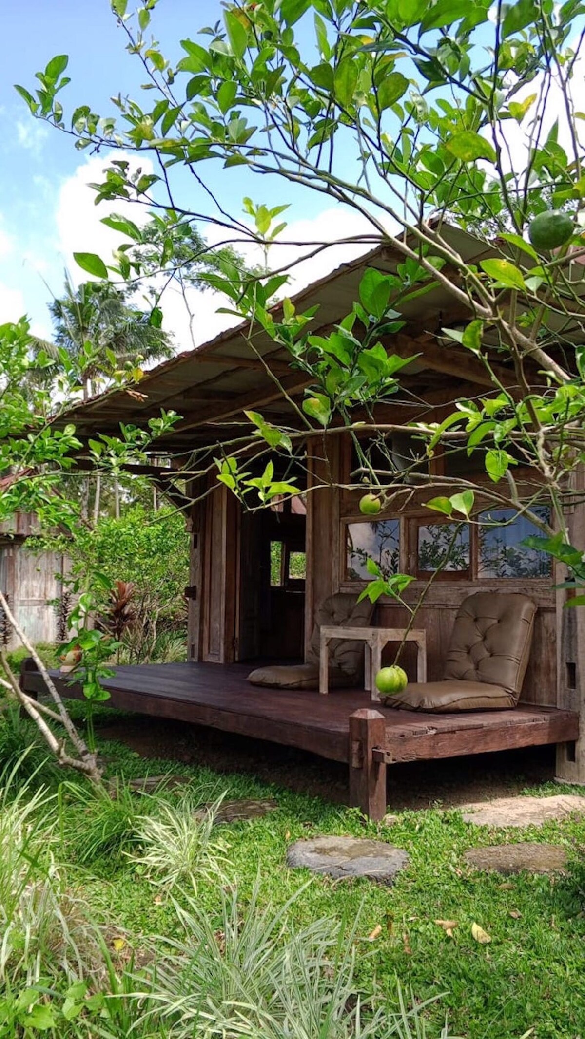 Forget your worries in this spacious and serene space as you will be surrounded by nature when staying in Purwa Ijen. Our bungalows have a dedicated patio overlooking a garden and a fruit plantation. Our plantation produces fruits, such as mangosteens, avocados, starfruit, pineapple & banana, which our guests can pick when the season comes. Our bungalow is a wooden house adopting the local Osing traditional house. We are located in Licin, a charming village at the foot of Mount Ijen, Banyuwangi.