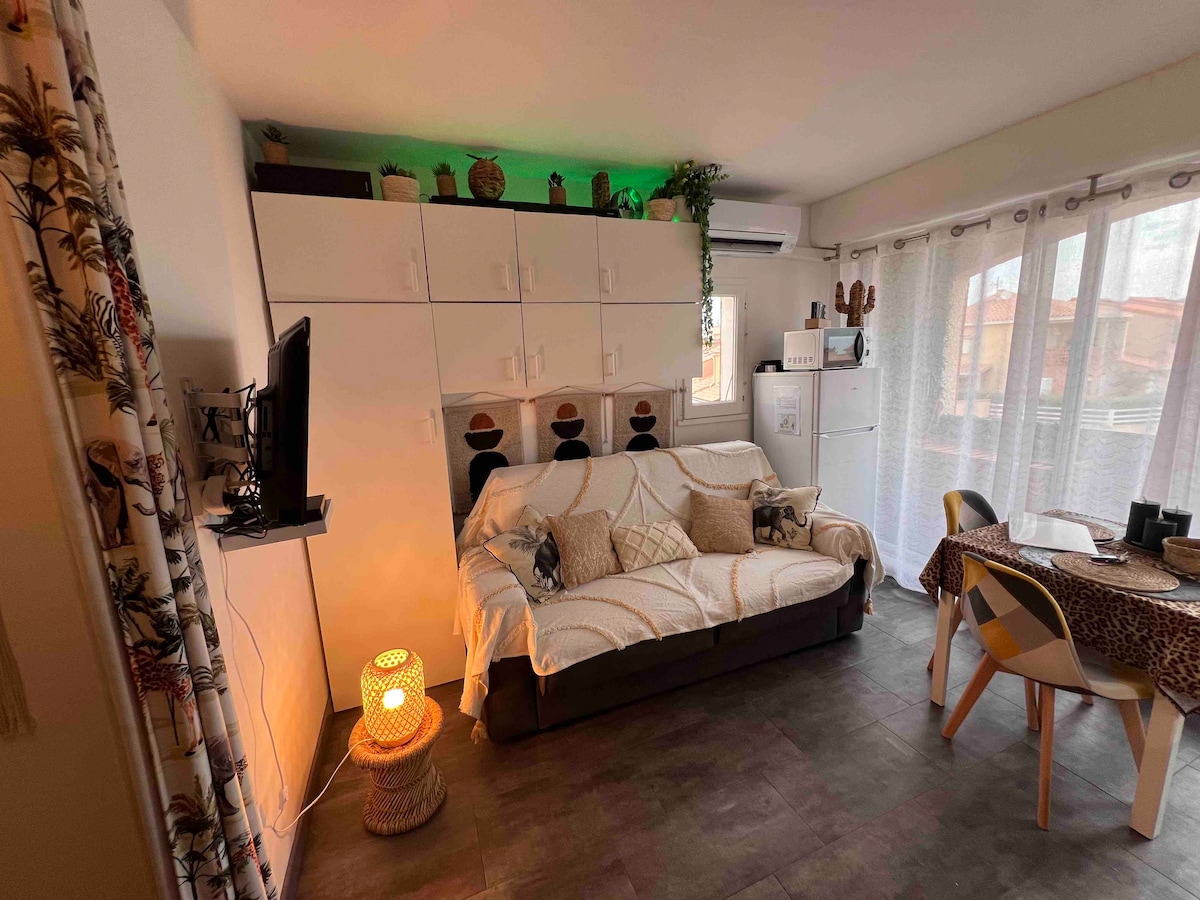Entdecken Sie diese charmante 50 qm Wohnung, komplett renoviert im tropischen Dschungel-Stil, im begehrten Viertel der Halbinsel. Sie ist außergewöhnlich und voller Charme, verfügt über ein Schlafzimmer und ist ideal für Ihren Aufenthalt mit Freunden oder zu zweit. Sie bietet Platz für bis zu 2 Personen und einen atemberaubenden Blick auf den Teich und den majestätischen Canigou, wodurch ein einzigartiger, abwechslungsreicher und unvergesslicher Rahmen für Ihren Aufenthalt geschaffen wird.