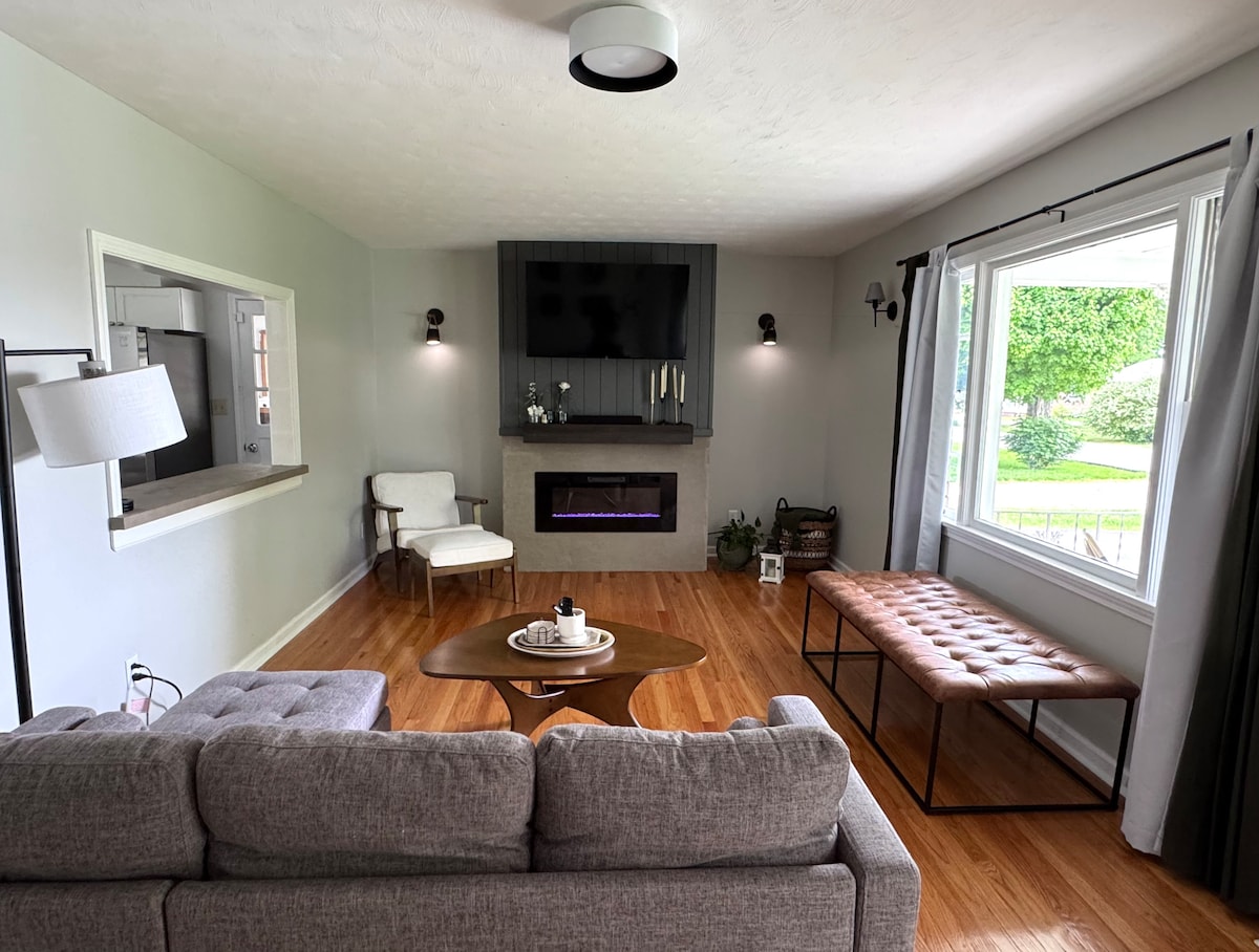 Willkommen in unserem charmanten Airbnb in Bardstown, Kentucky, der Bourbon-Hauptstadt der Welt! Im Herzen der Innenstadt gelegen, ist unser geräumiges und wunderschön eingerichtetes Zuhause der perfekte Rückzugsort für Bourbon-Enthusiasten, Geschichtsinteressierte und Naturliebhaber gleichermaßen. Mit drei komfortablen Schlafzimmern, die jeweils mit Plüschbettwäsche ausgestattet sind. Der Wohnbereich ist hell und luftig, mit großen Fenstern und bequemen Sitzgelegenheiten zum Entspannen. Die voll ausgestattete Küche ist perfekt, um köstliche Mahlzeiten zuzubereiten.
