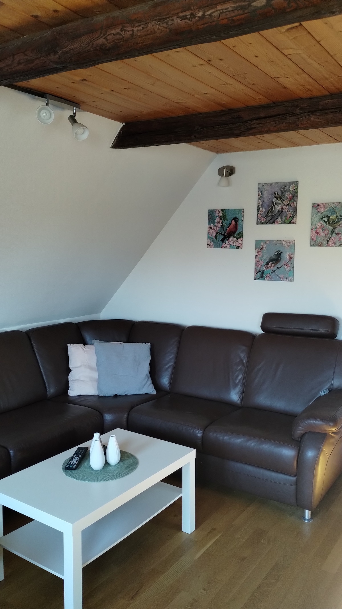Liebevoll eingerichtete Ferienwohnung – ideal für Paare, kleine Familien oder Ruhesuchende. Die Unterkunft verfügt über ein Schlafzimmer sowie eine bequeme Schlafcouch im Wohnzimmer. Die Küche ist voll ausgestattet. Ein besonderes Highlight ist der überdachte Balkon mit wunderschönem Ausblick. Zwei Supermärkte und ein Bäcker befinden sich in unmittelbarer Nähe. Für unsere kleinen Gäste stellen wir auf Anfrage gerne ein Babybett und einen Hochstuhl zur Verfügung.