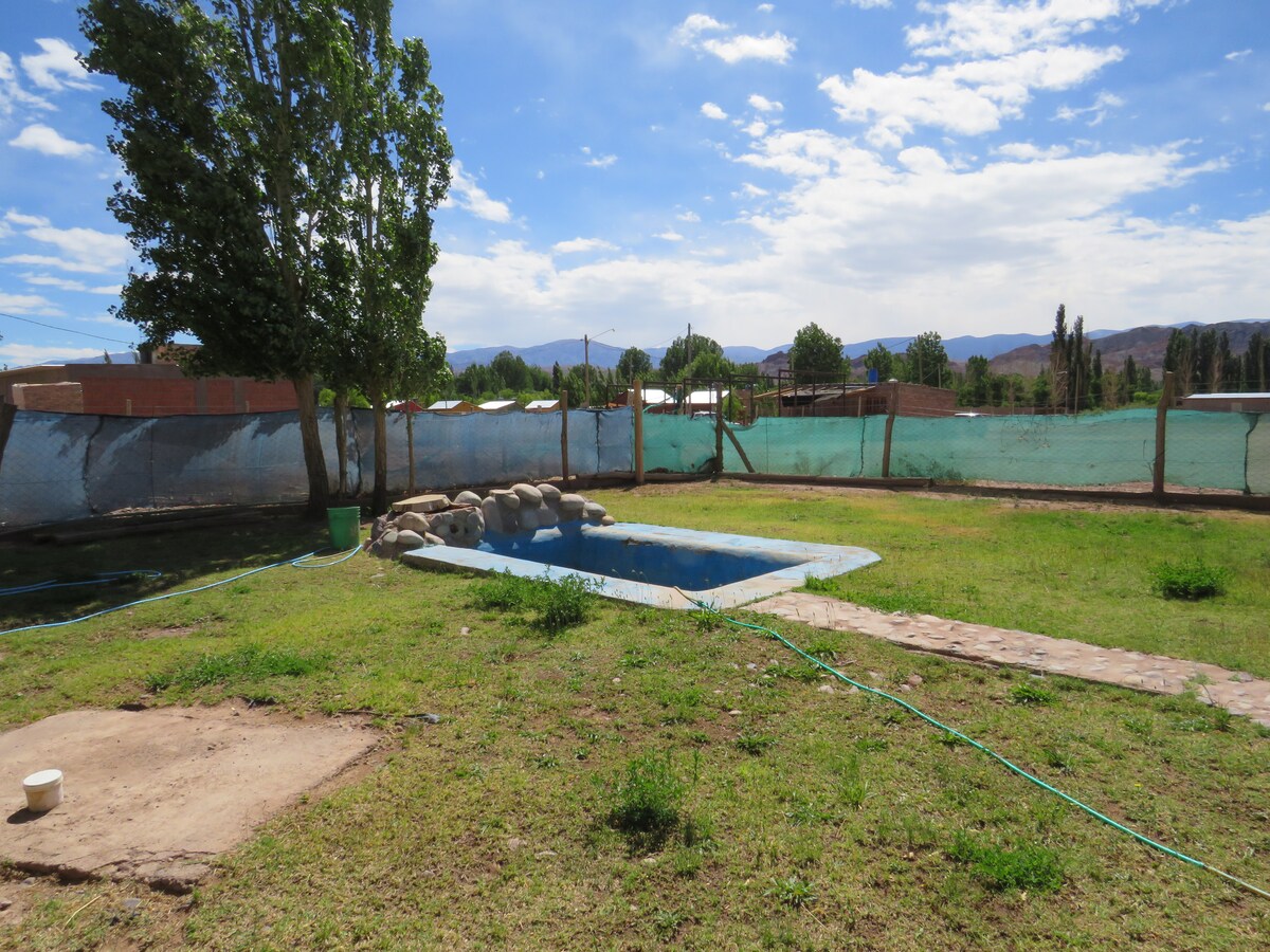 ¡BIENVENIDOS A HUNUC! Nuestro complejo ofrece una vista espectacular a la cordillera de los Andes y una piscina ideal para disfrutar del paisaje y la tranquilidad del lugar. Incluimos desayuno barrealino para 2 personas (semitas, tostones, fruta, jugo e infusiones); los desayunos adicionales se abonan aparte. También podés sumar la opción de media pensión con cena, ideal para relajarte sin cocinar. Nos encontramos cerca de los mejores atractivos y paseos para visitar en Barreal y Calingasta.