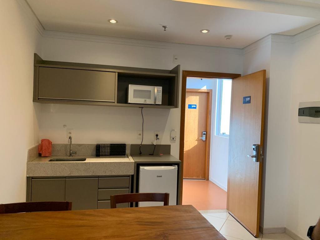 Apartment im Condomínio Barretos Park Hotel, im Parque do Peão de Barretos - Klimaanlage - 1 Kingsize-Bett (kann in 2 Einzelbetten aufgeteilt werden) - 1 Schlafsofa - Bettwäsche und Handtücher für die Gäste - Haartrockner - Minibar - Mikrowelle - Teller, Gläser und Besteck