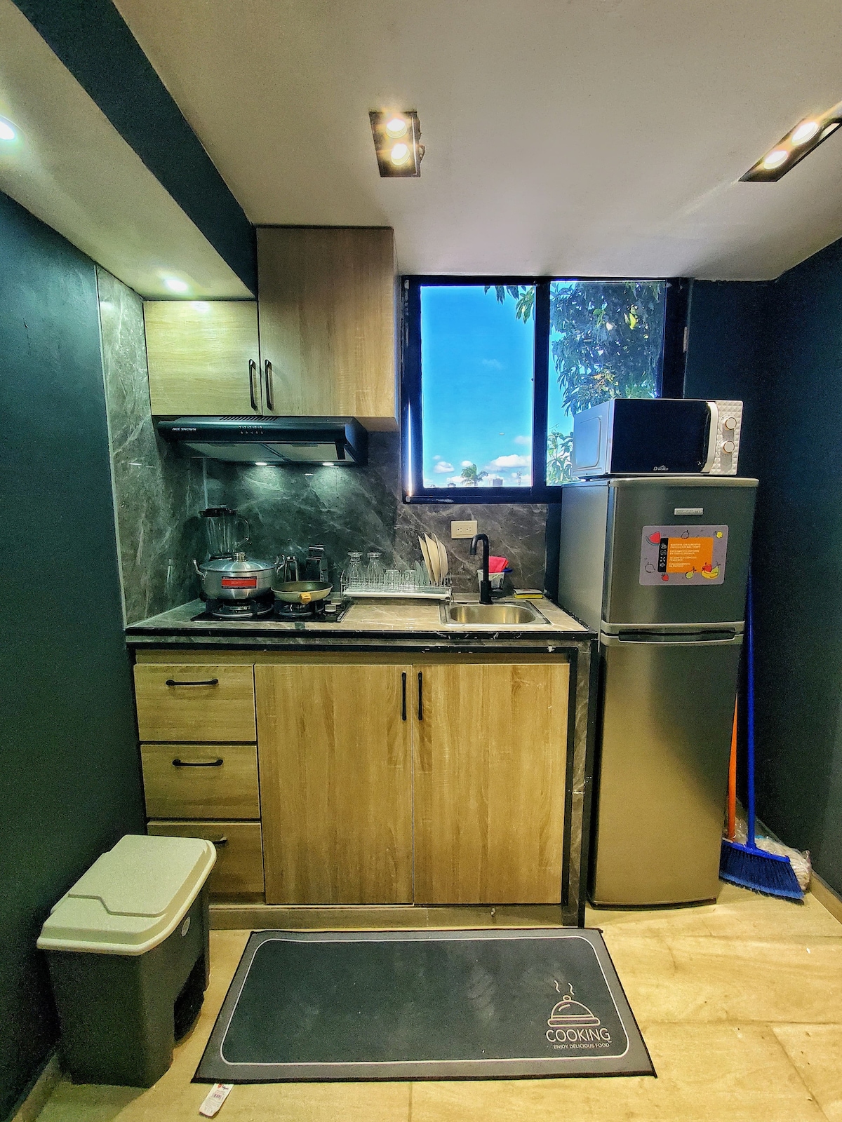 Vergiss deine Sorgen in diesem geräumigen und ruhigen Raum. Du wohnst an einem Ort, der ein Schlafzimmer mit einem Kleiderschrank, ein eigenes Badezimmer und eine Sitzecke zum Entspannen umfasst, die mit einer Küchenzeile ausgestattet ist, um einfache tägliche Mahlzeiten zuzubereiten.