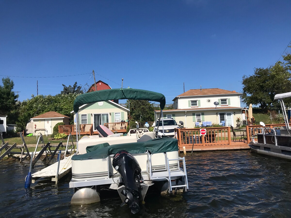 Relax with the family at this historic stone cottage. Create new memories on around the fire pit. While relaxing on the lake you have access to stand up paddle boards/kayaks & floats. Easy access to public boat launch (we can help you rent a boat or bring yours) 2 bedrooms, a pullout sofa and a lovely sleeping porch. Close to Bay Pointe Inn (live music every Wednesday!) Will consider a dog on a case by case basis due to neighbors all being dog owners. $250 pet fee