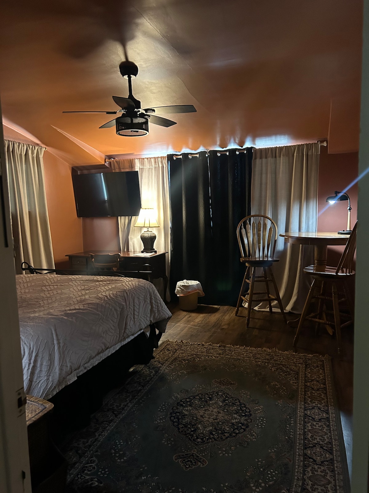 This stylish guesthouse is perfect for a quiet getaway. A king size bed with a full bath gives you a relaxing time. There is an additional roll away bed and an air mattress for extra guests (up to 4 people per stay). Tons of things to do in the area and you can see the stars every night. This is a perfect getaway to relax and detox, or veg out and watch movies on the smart tv.