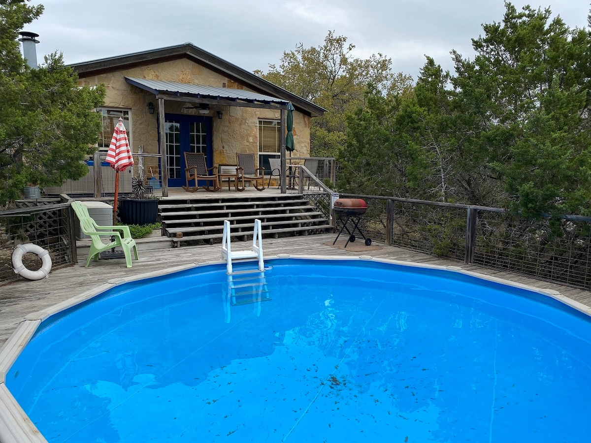 Entspanne dich, verjünge dich und belebe deinen inneren Geist in einem wunderschönen, malerischen Hill-Country-Paradies! Dies ist eine ideale Hütte für einen Kurzurlaub. Komfortabel, gemütlich, entspannend und umgeben von Natur mit offenem Fensterblick auf die sanften Hügel und einer umlaufenden Terrasse mit einer Propangrillstelle. Wandere auf privaten Wanderwegen, tauche in den Blanco River ein, wache mit morgendlichen Singvögeln auf und schlafe unter dem Sternenhimmel ein. Abgeschieden und doch günstig gelegen, nur 5 Minuten vom Wimberley Square und 20 Minuten von der Innenstadt von San Marcos entfernt.