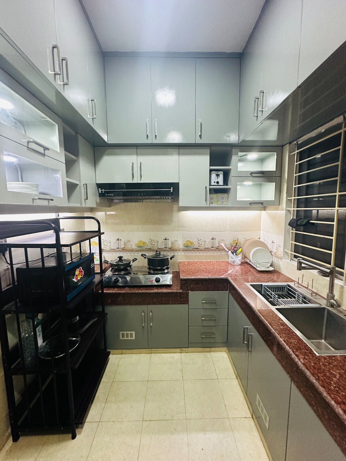 Diese stilvolle Wohnung ist auf Komfort, Bequemlichkeit und einen Hauch von Ruhe ausgelegt. Wache mit natürlichem Sonnenlicht durch große Fenster auf, genieße deinen Morgenkaffee auf dem gemütlichen Balkon und entspanne dich nach einem Tag in der geschäftigen Stadt in einem eleganten, klimatisierten Raum. Perfekt im Basundhara H-Block gelegen, bist du nur wenige Minuten von Einkaufszentren, Cafés, Restaurants, Universitäten und Unternehmensbüros entfernt – alles, was du brauchst, in einer Zone.