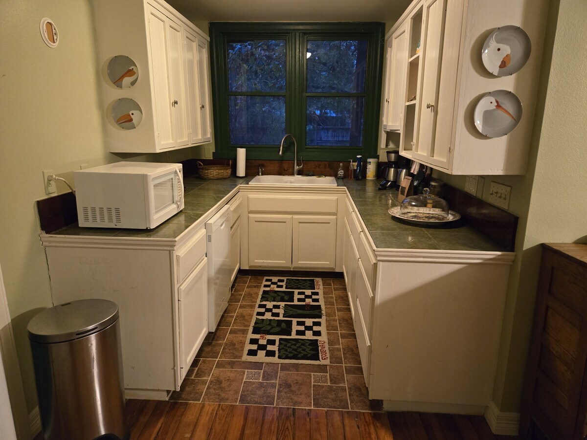 We have a cute guest room attached to our garage adjacent our back porch. It’s a small space but has all the essentials and is super comfy! It has a full size comfy bed, a comfy chair, dresser, desk, small refrigerator, microwave, coffee maker, and 36" flat screen TV with Amazon Firestick. The bathroom has a small shower. We include lots of little extras to make your stay enjoyable. We live in the Historic area of downtown Bastrop. Our home was built in 1916 by my husband's great grandfather.