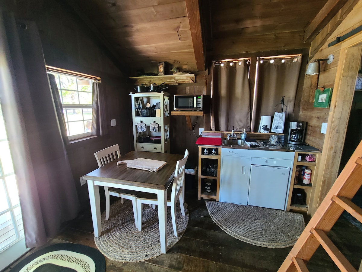 Die Paarhütte ist Teil der rustikalen Hütten von Lakeview by Sue Barn Venue. Mit einer eigenen Veranda mit Seeblick bietet sie Platz für maximal 3 Gäste (einschließlich des über eine Leiter zugänglichen Lofts für eine Person). Wenn sie nicht zusammen mit einer Hochzeit/Veranstaltung vermietet wird, wird sie hier für einen ruhigen Aufenthalt angeboten. Alle Küchenutensilien, die du benötigst, bequeme Bettwäsche und flauschige Handtücher für das komplette Badezimmer mit Dusche wurden bereitgestellt. Der kleine See liegt nur wenige Schritte von deiner Haustür entfernt, wo du auch ein wenig angeln kannst.