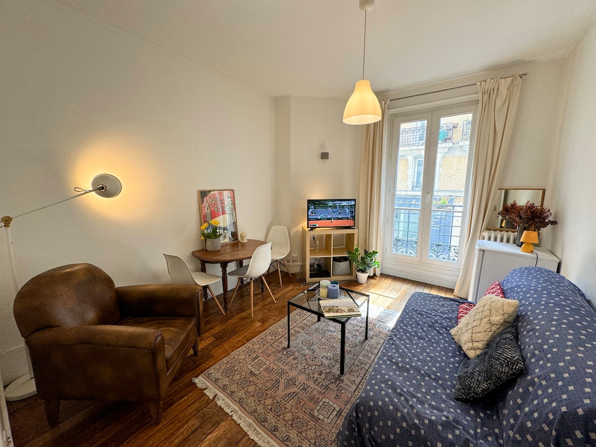 Entdecken Sie Paris und seinen Charme in einer ruhigen und hellen Umgebung. Dieses Studio ist so konzipiert, dass es komfortabel ist (viele Annehmlichkeiten: TV The Frame 55", Nespresso-Kaffeemaschine, Milchschäumer, Toaster, Backofen, beheizter Spiegel, Waschmaschine, Trockner usw.), wird Sie willkommen heißen, damit Sie sich in dieser Stadt mit tausend historischen Stätten wie zu Hause fühlen. Ich empfehle die Bäckerei Damiani um die Ecke, die Ihnen den Geschmack eines Buttercroissants aus meiner Kindheit vermitteln wird.