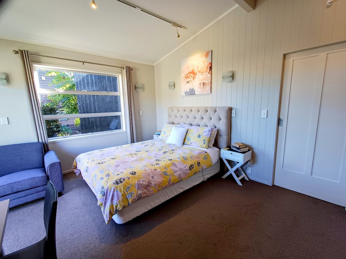 You'll have your own area in our spacious home at the end of a quiet cul de sac with off-street parking, a short distance from the beach, shops & restaurants. You'll be welcomed with a complimentary drink. You have your own entry, sunny bedroom (bed has a near new mattress), bathroom (incl bath, candle & bath oils) & dining room with a continental breakfast provided & coffee from a pod machine. A microwave & toaster are available. Checking in outside of 3-5pm is only by prior approval.