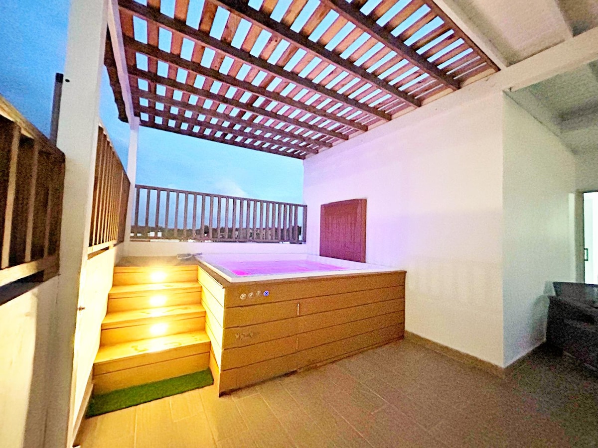 Penthouse mit eigener Terrasse und Whirlpool. Diese Unterkunft liegt nur 3 Minuten vom Strand entfernt und kombiniert Luxus, Komfort und perfekte Lage. Das Penthouse verfügt über: ✨ 2 Schlafzimmer 🚿 Zwei voll ausgestattete Bäder 🍳 Voll ausgestattete Küche 🛋️ Hauptraum + Familienzimmer für zusätzlichen Komfort 🌅 Balkon mit Aussicht und eigener Terrasse mit Whirlpool 🔥 Grillbereich, ideal zum Teilen 🏊♀️ Schwimmbad und Fitnessraum zur gemeinsamen Nutzung 📹 27/7 Sicherheit