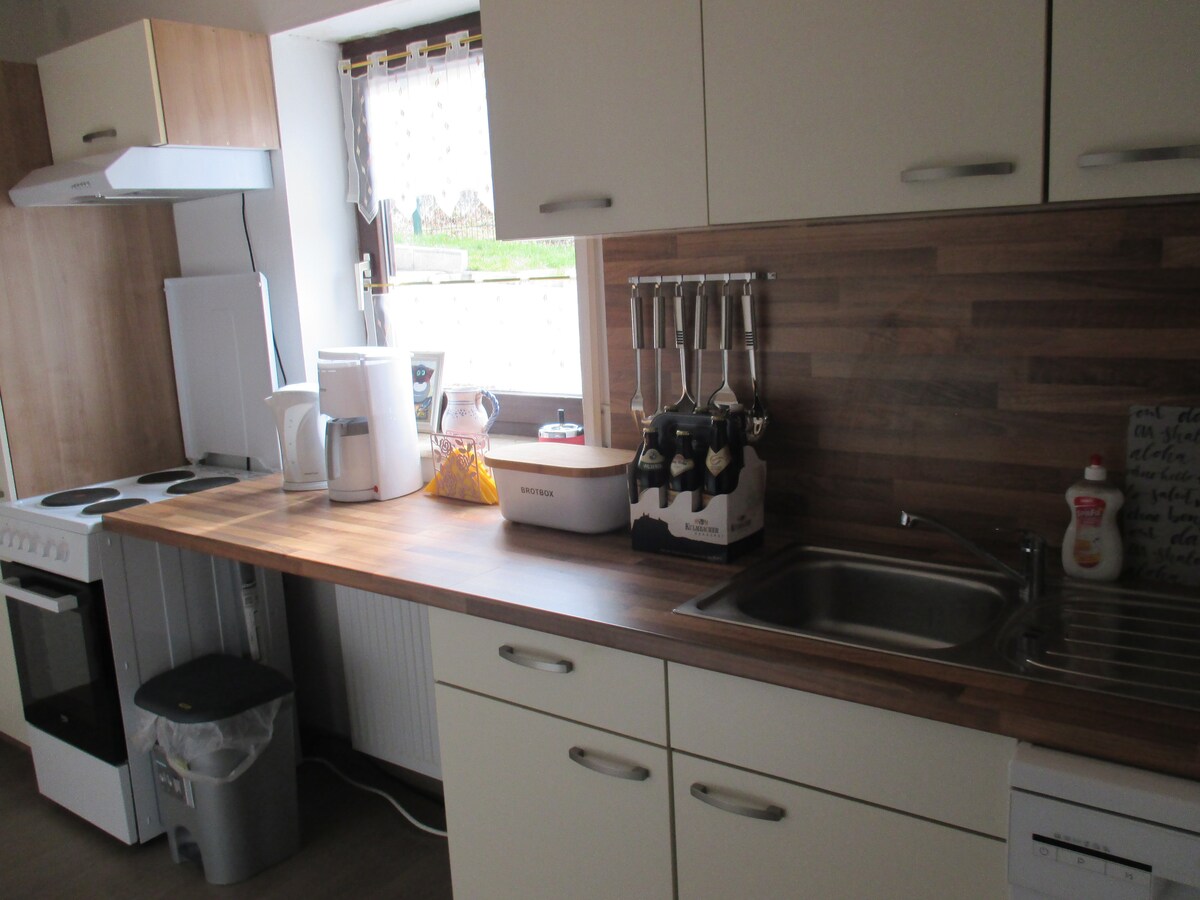 Offen gestaltete Wohnung. Im EG der Whng: Küche, Bad, seperates WC sowie Ess- und Wohnzimmer. Das OG der Whng. ist ein ausgebauter Dachboden, hier können insg. bis zu 6 Personen schlafen. Eine Matratze auf dem Boden liegend (1,40 m breit) und 4 Einzelbetten in einem offenen Raum! (Zugang zur Matratze eng und tief!! Da sich die Wohnung 2 Stockwerke über einer Gastwirtschaft befindet kann es sein, dass ab und an Musik in die Wohnung dringt. Dies meist nur am Wochenende.